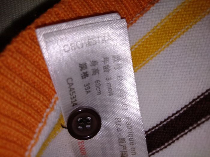 Gilet orchestra, taille 3 mois, en bon état, il n'y a pas de tâches ni de trous. #59160garcon3mois