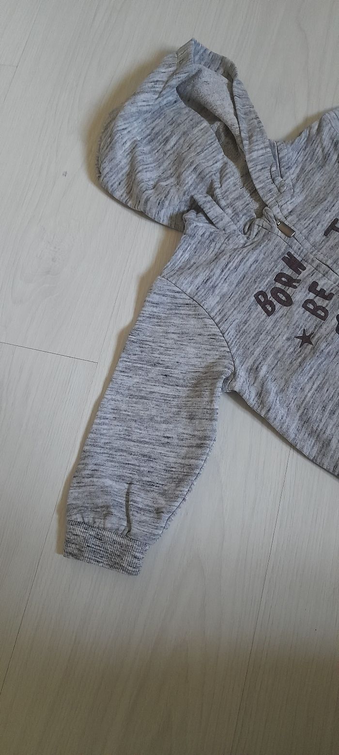 Sweat zippé T 24 mois Marque KIMBALOO Couleur gris chiné avec Inscription sur devant Attache fermeture éclair Manches longues Capuche Très très bon état