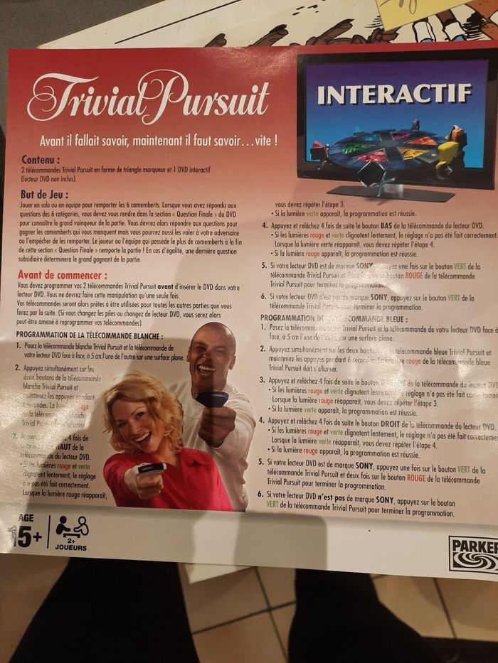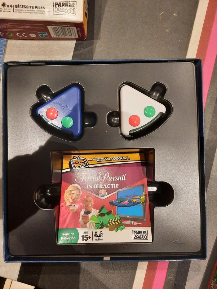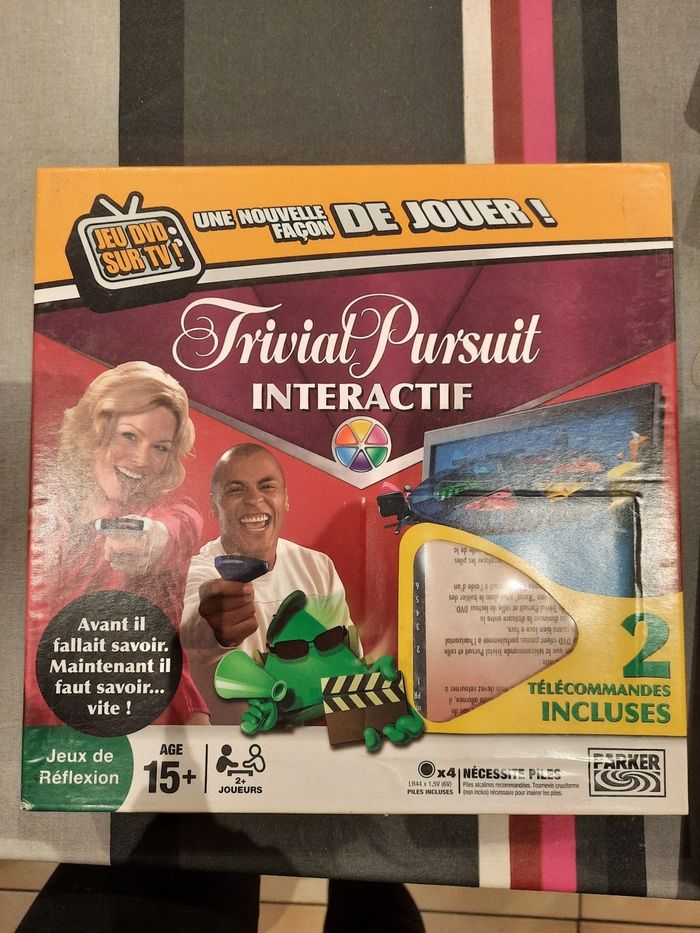 Vends le jeu trivial pursuit interactif avec un dvd et 2 télécommandes. Fonctionne parfaitement 10 euros