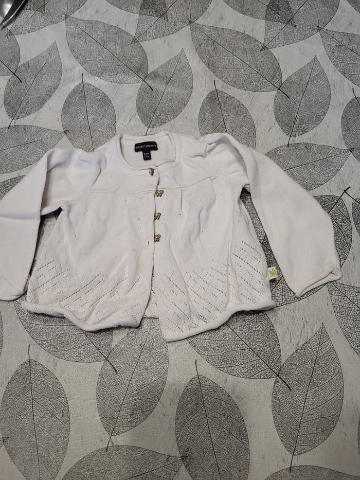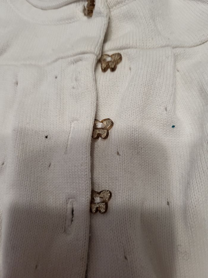 Gilet blanc sergent major 9 mois forme trapèze ajouré losange sur le bas bouton papillon taupe transparent