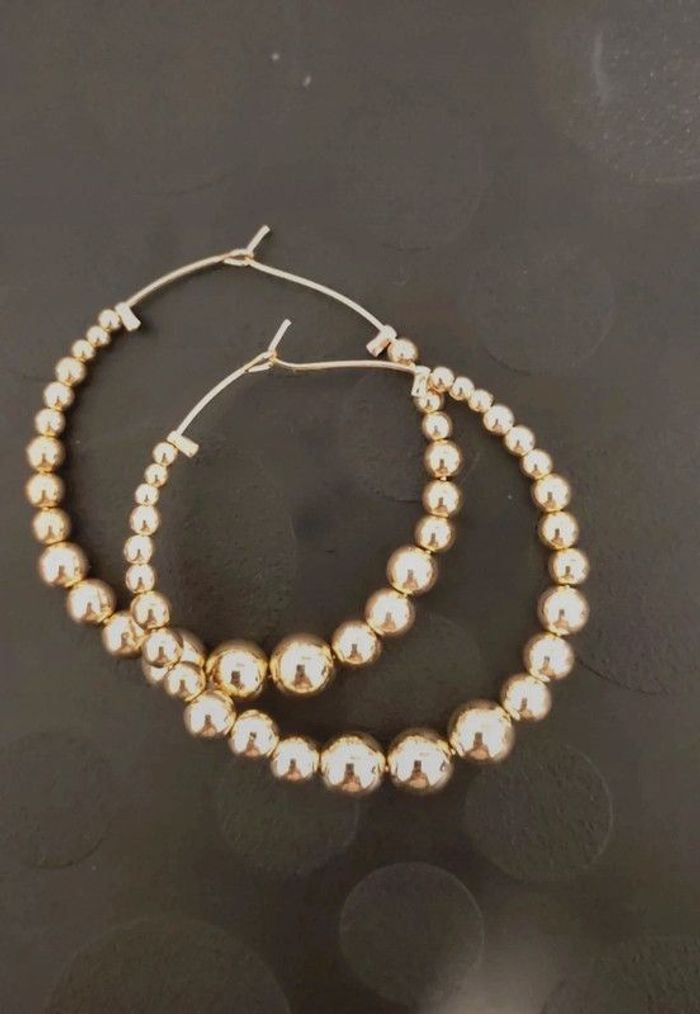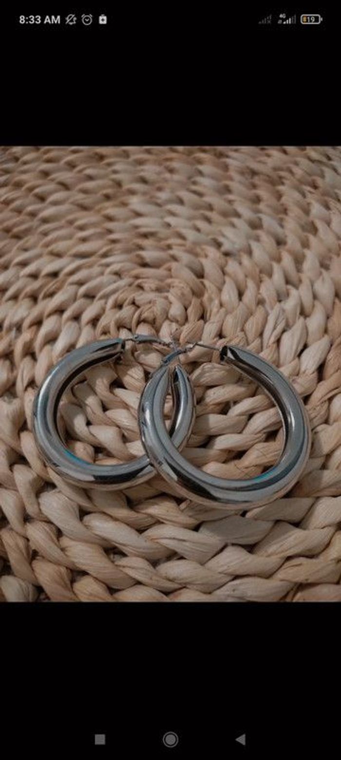 Lot 3 paires de boucles d'oreilles Diametre 5 cms 2 paires argentés 1 pair doré Sous blister. Jamais portés N'hésite pas à demander plus de renseignements 🙂