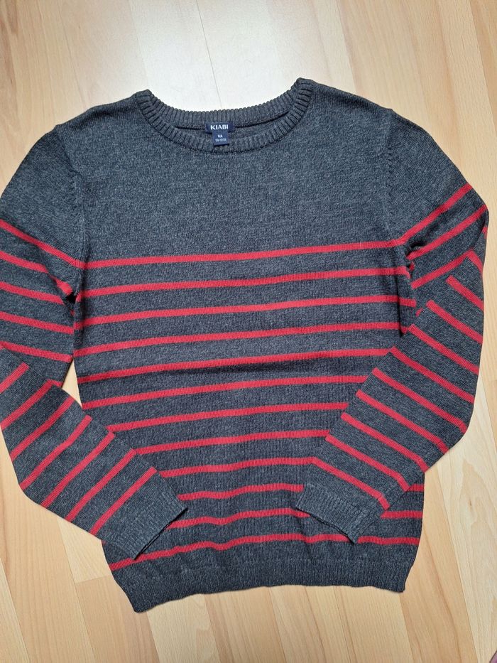 GARÇON 8 ANS N°14 pull fin Rayé Gris / rouge Taille 8 ans Kiabi 3€ #kelly_garçon8ans
