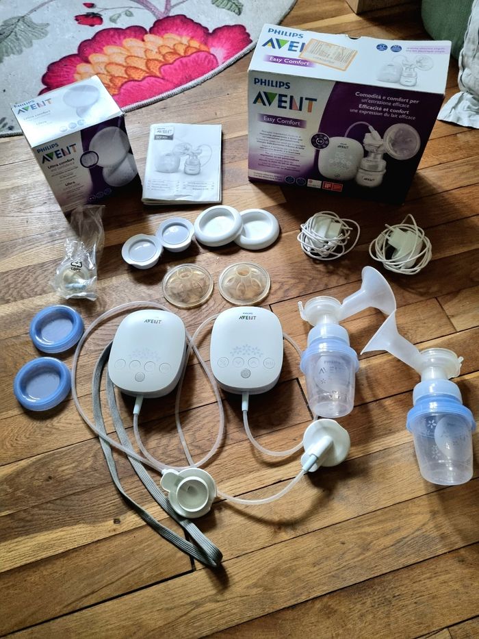 Double tire lait sur secteur ou pile Tetrelle + bout silicone Bouchons, pots, cordon de rechange + coussins jetables anti-fuite