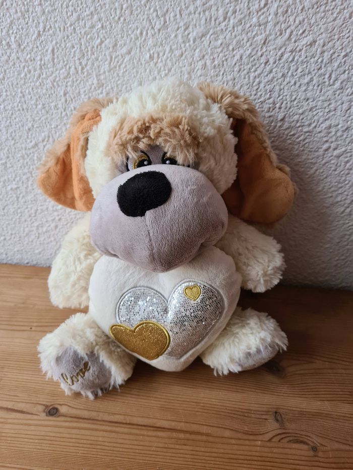 peluche chien beige cœur