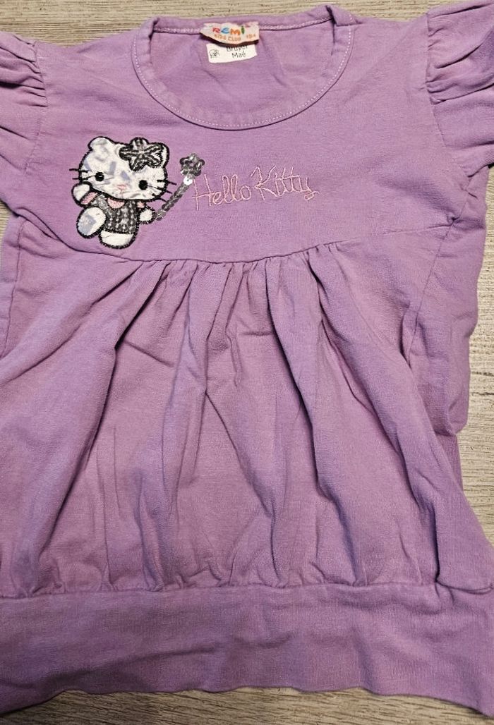 Blouse mauve clair Hello Kitty, 4/5 ans, peu mise - photo numéro 2