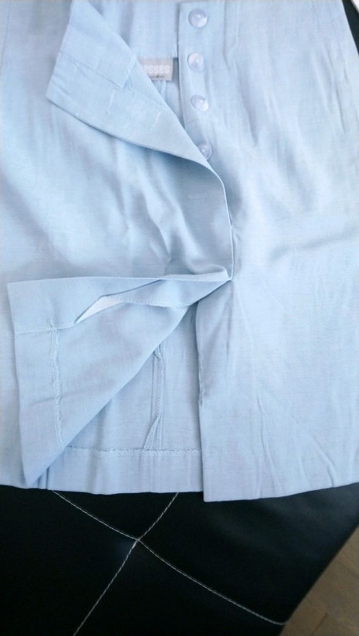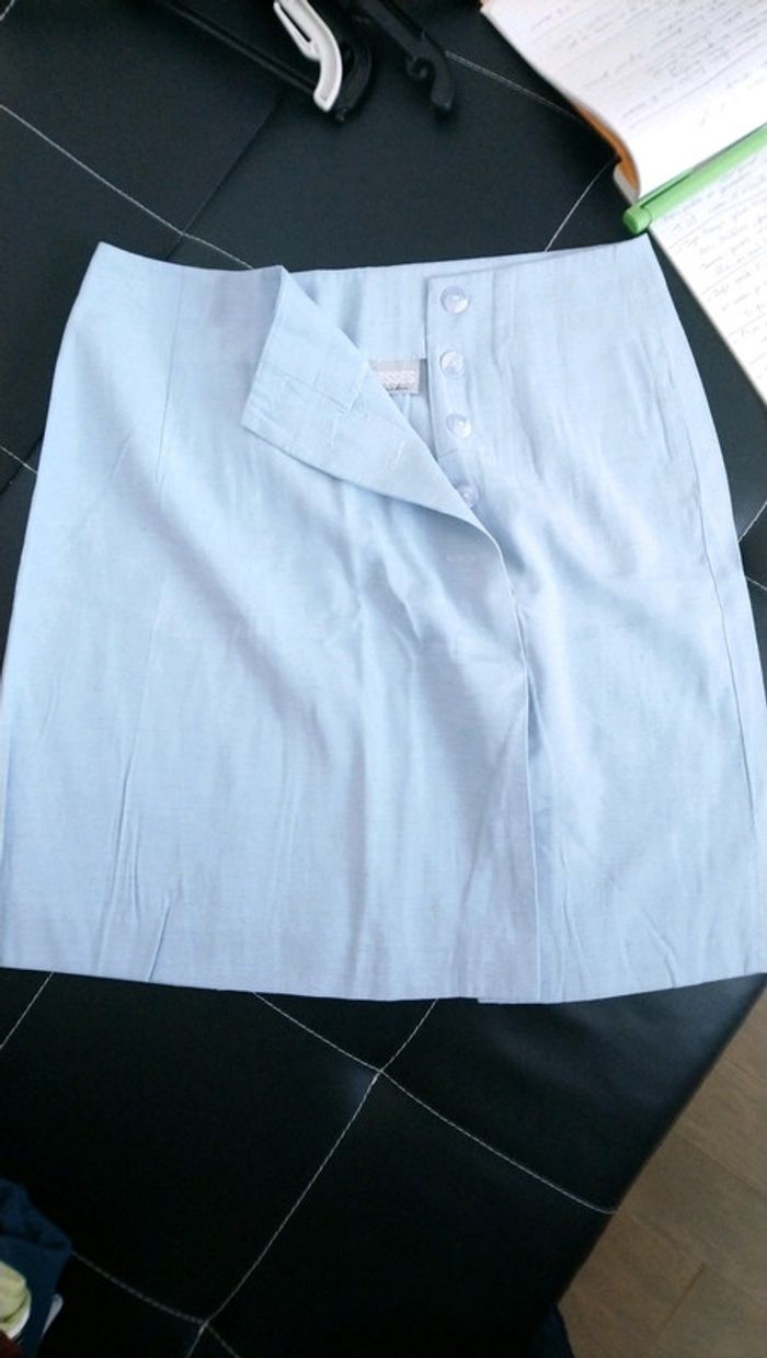 Bleue ciel, très légère, boutons sur le devant, viscose et polyester. Très peu portée. Petit défaut à l intérieur ( voir photos) #lydie59192nvetementsfemmes38