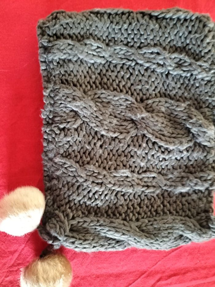 Tour de cou gris anthracite avec 2 ponpons beige en 2/6 ans de la marque Okaïdi en très bonne état aucun trou ni tâche(cf voir photos). #bouriquet79accesoiresenfant