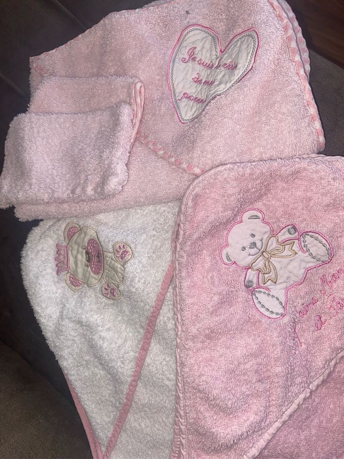 Vends 3 cape de bain avec leur petite gant de toilette en bonne état