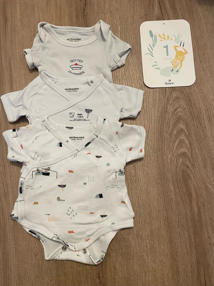 Lot de 3 bodys taille 1 mois Manche courte Marque vertbaudet En excellent état