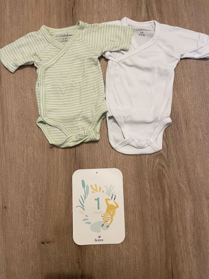 Lot de 2 bodys taille 1 mois Manche courte Marque kitchoun En excellent état