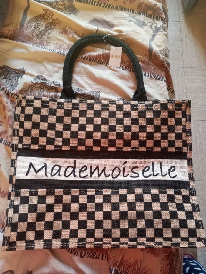 Sac shopping ou autre en jute assez grand avec écrit mademoiselle