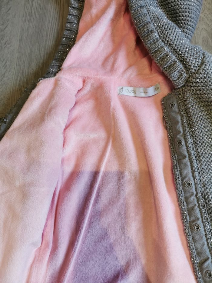 Manteau chaud rose et gris a paillette 6 mois