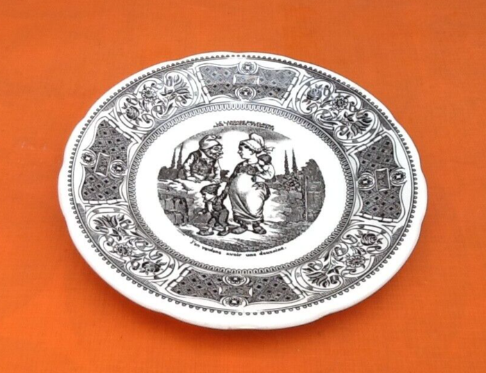 (article vendu en l' état, état d' usage, fêle, égrenure, voir toutes les photos). 2 Assiettes Faïence de Gien "Le langage des fleurs" - Fleur d' oranger (Si mon épousée est rosière. j' pouvons dire que j' ais mon rosier). - Rose Trémière-Fécondité (J' en voulons avoir une douzaine). Diamètre : 200mm Hauteur : 25mm Poids : 560grs