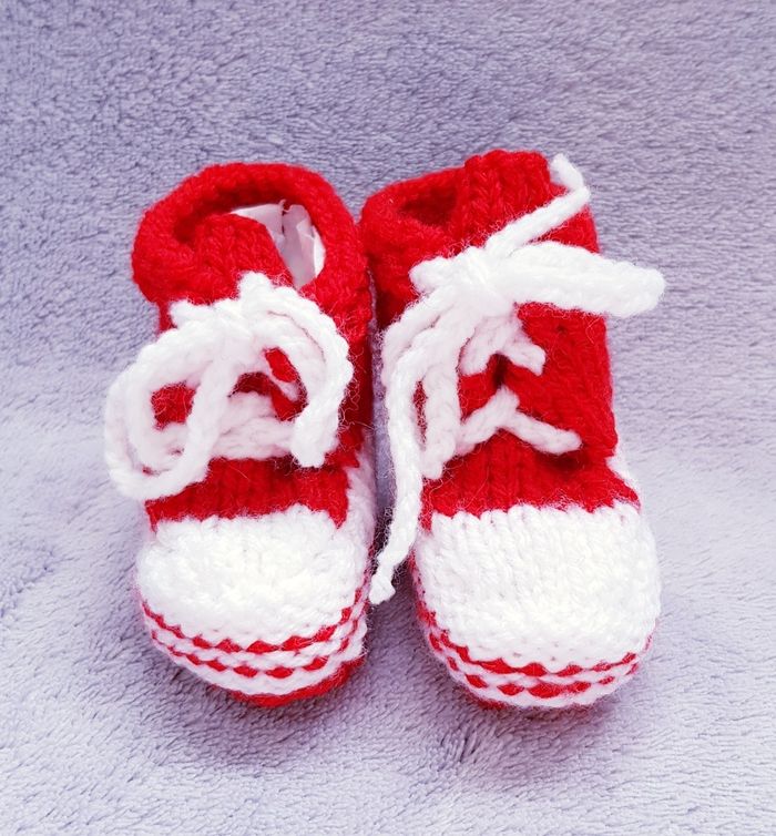 Lot de 2 paires de bottines tricotées en laine avec lacets 👶 Taille : 0/6 mois ❌ Neuf (jamais porté)