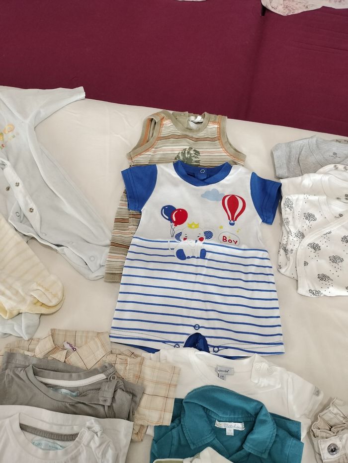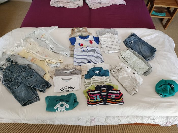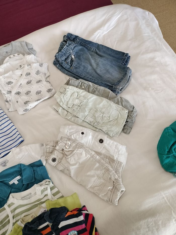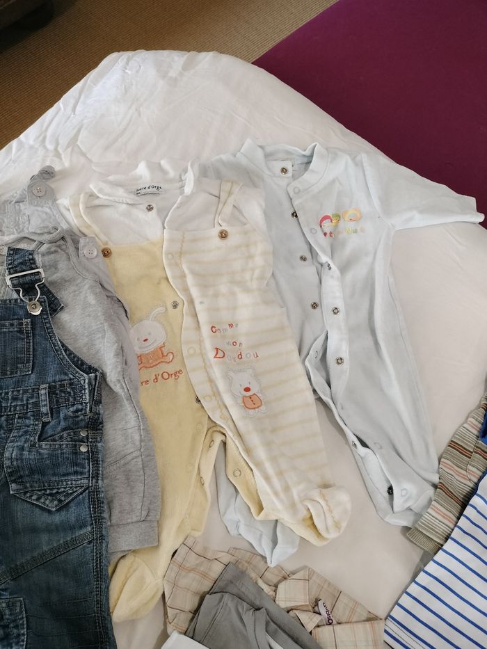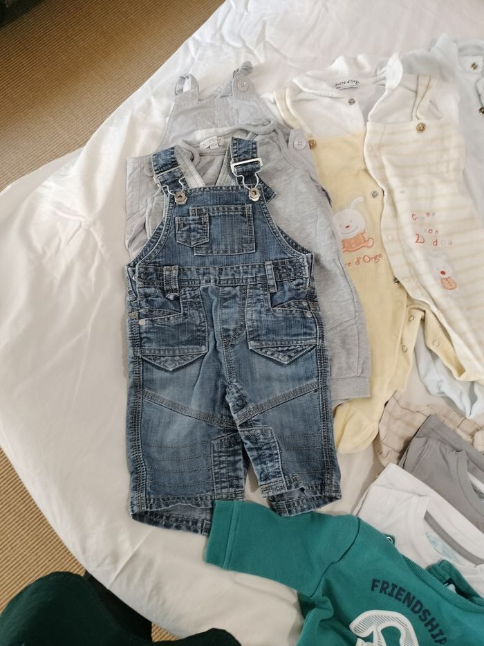 2 pyjama 2 grenouillère 3 salopette 3 body 6 pantalon shorts 1 pull 1 casquette 6 tee shirt 1 débardeur 1 chemise Taille 3 mois Multi marque Kitchoun Tape a l'oeil Kimbalo Obaibi Gémo