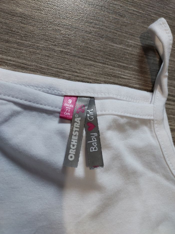 Bonjour Je vends ce lot de 4 débardeurs bébé fille Marque orchestra Très bon état Taille 9 mois