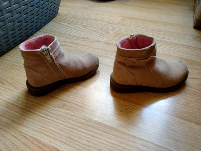 Bottines rose poudré. Gemo. Pointure 24 Fermeture éclair. Noeud sur le côté. Ont été porté. Restent en bon état Le bout est un peu râpé , elles sont un peu boulochees. voir photos Semelle en bon état. Pas décollé. 1 euro Envoi par mondial Relay Remise en main propre possible sur Beauregard Vendon Riom ou Clermont Ferrand 63 #ptitesev63puericulture #ptitesev63bebe2ans