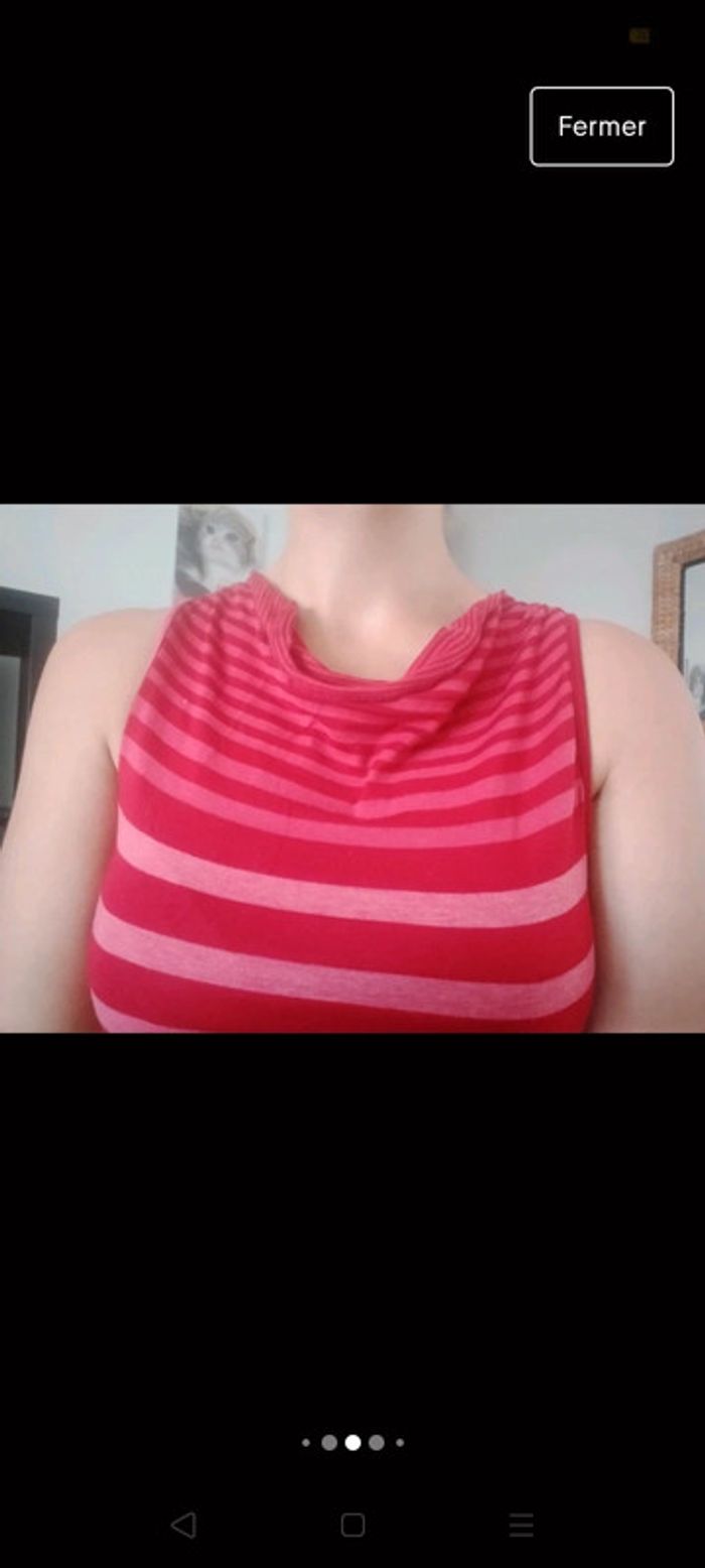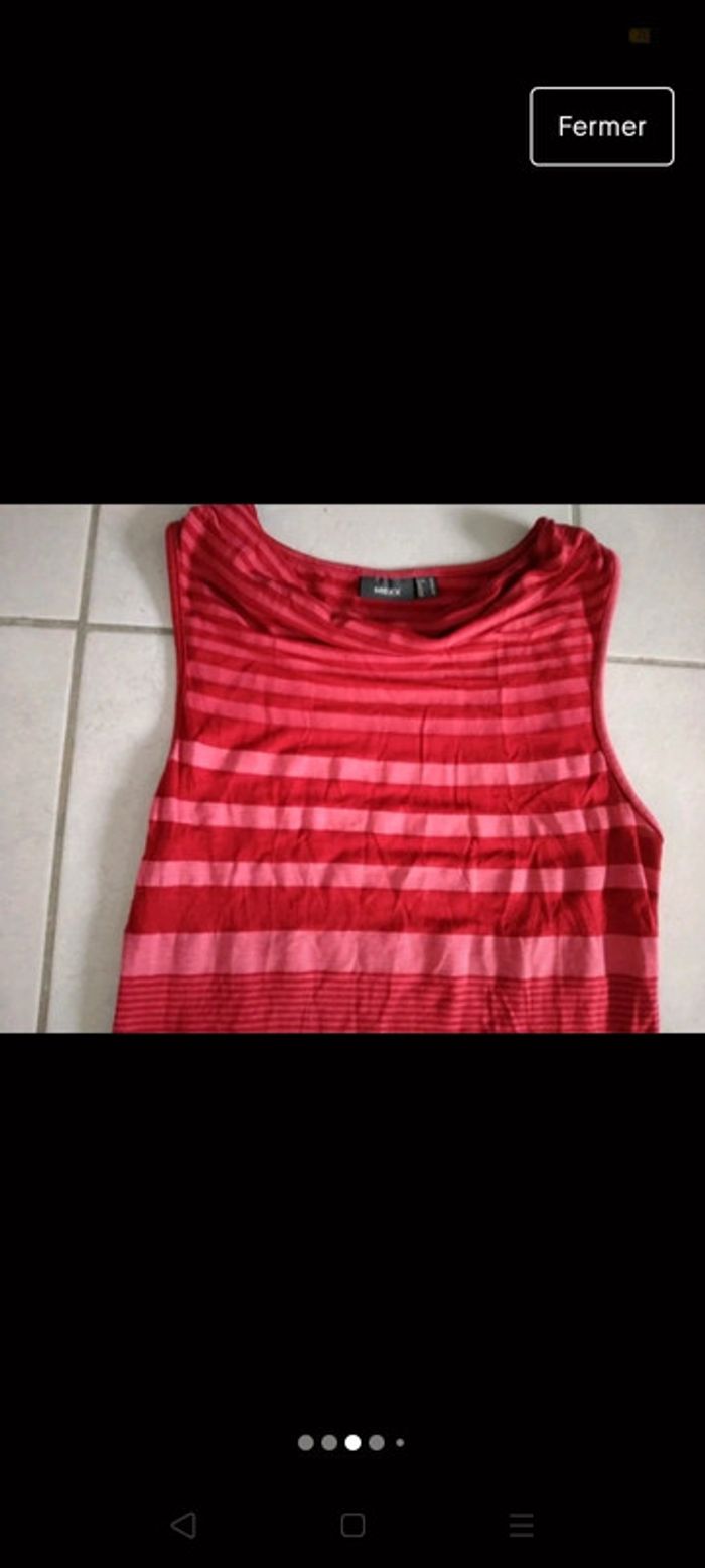 Jolie tunique sans manches Mexx Taille 36 A rayures horizontales rouges et roses foncées. Froncée devant au niveau du col. Voir sur photo porté. Très bon état. 15 Euros Envoi par mondial Relay Remise en main propre possible sur Beauregard Vendon Riom ou Clermont Ferrand 63. #ptitesev63vetement36 #mexx