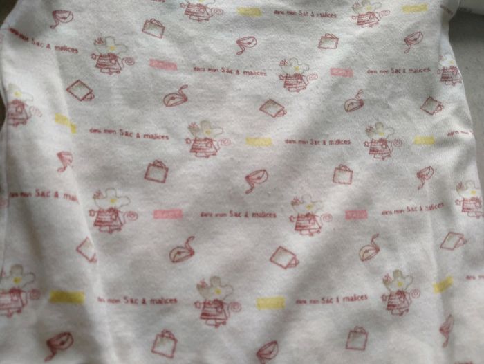 Lot de 3 bodys Manches longues. Taille 6 mois 1 body blanc "dans mon sac à malices" avec des petites souris et des sacs. Bon état. La pression du milieu n'a qu'une seule pression (mais ne gêne en rien l'utilisation, fermeture du body par les 2 pressions aux extrémités). voir photo 1 body blanc avec des dessins  Bon état. 1 body. Petit bateau. Blanc avec des petits lapins et des petits poussins. Bien porté donc couleur un peu passée et vol légèrement jauni. Voir photo. Lavé avec lessive bébé. Maison non fumeur. 1€20 le lot Sur Beauregard Vendon 63 Envoi possible #ptitesev63bebe6mois #ptitesev63body6mois #body