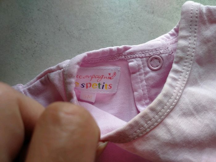 Lot de 2 tee shirt. Taille 6 mois Tee shirt La compagnie des petits. rose avec l'inscription "la Cie" et un cœur soleil a gauche. 3 boutons pressions dans le dos. Tee shirt G baby by gemo  violet avec l'inscription "sympa, fun, parfaite comme papa". 2 boutons sur l'épaule droite. Lavé avec lessive bébé. Maison non fumeur Les 2 sont un peu jaunis au col. Voir photo. 2 Euros Sur Beauregard Vendon 63 Envoi possible #ptitesev63bebe6mois