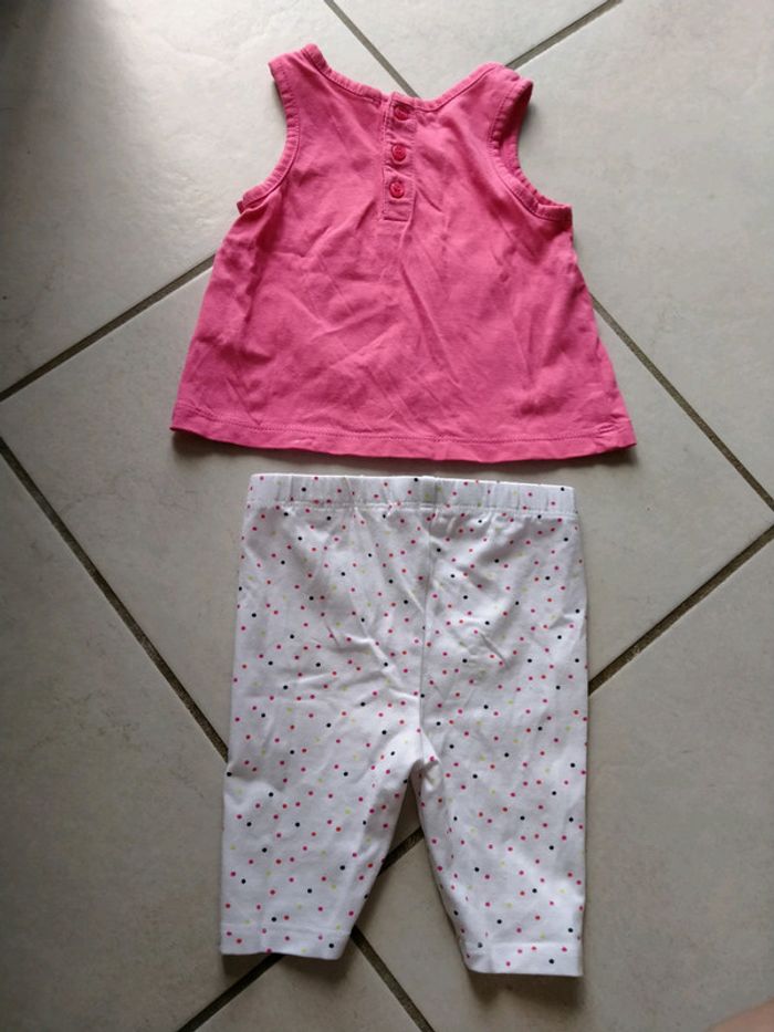 Ensemble débardeur rose et Panta court blanc à pois. bebe 6 mois - photo numéro 2