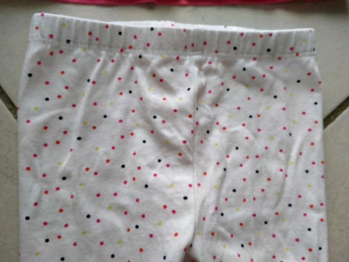 Ensemble débardeur et Panta court Taille 6 mois Débardeur marque IKKS rose avec des cœurs et des étoiles, et l'inscription "IKKS". 3 boutons dans le dos Legging Panta court  Marque G baby by gemo Blanc à pois multicolores Très bon état. Lavé avec lessive bébé. Maison non fumeur 3 Euros Sur Beauregard Vendon 63 Envoi possible #ptitesev63bebe6mois