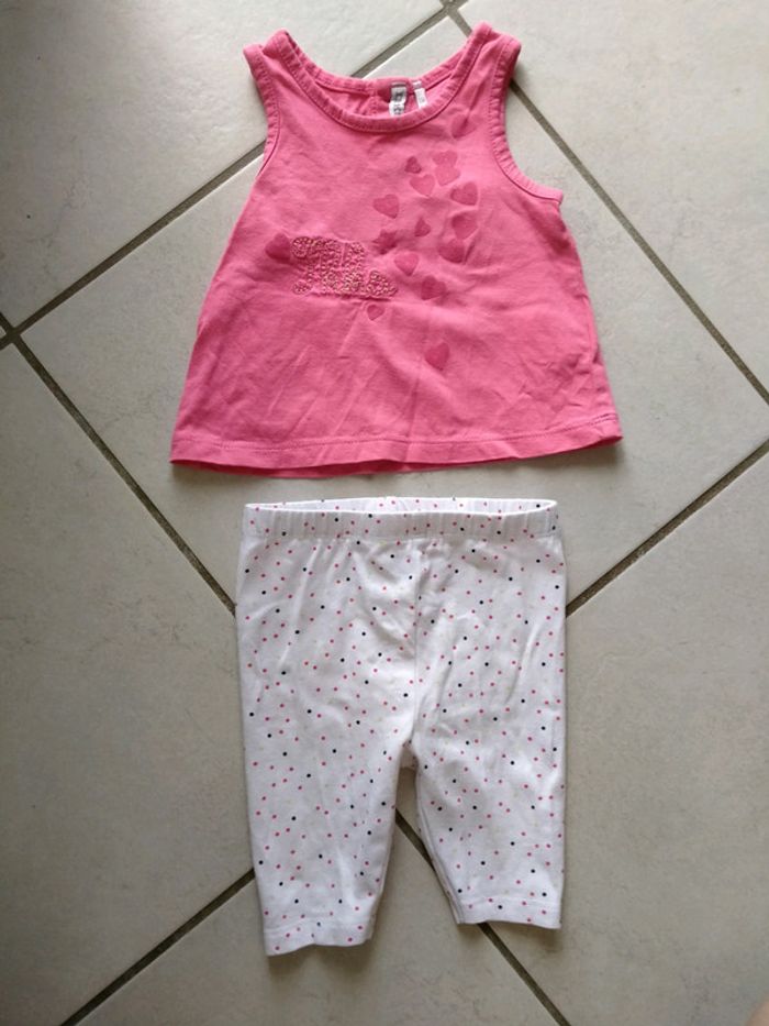 Ensemble débardeur rose et Panta court blanc à pois. bebe 6 mois - photo numéro 1
