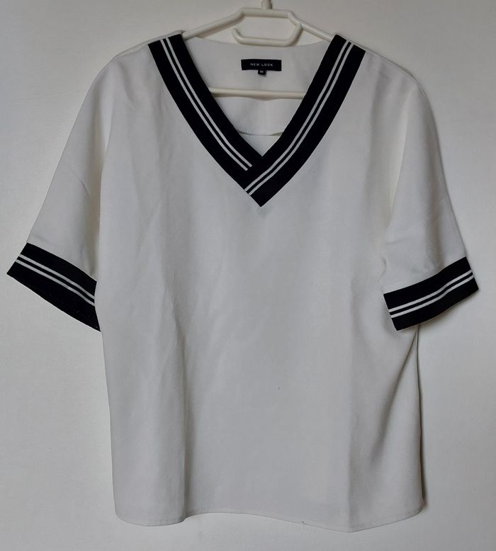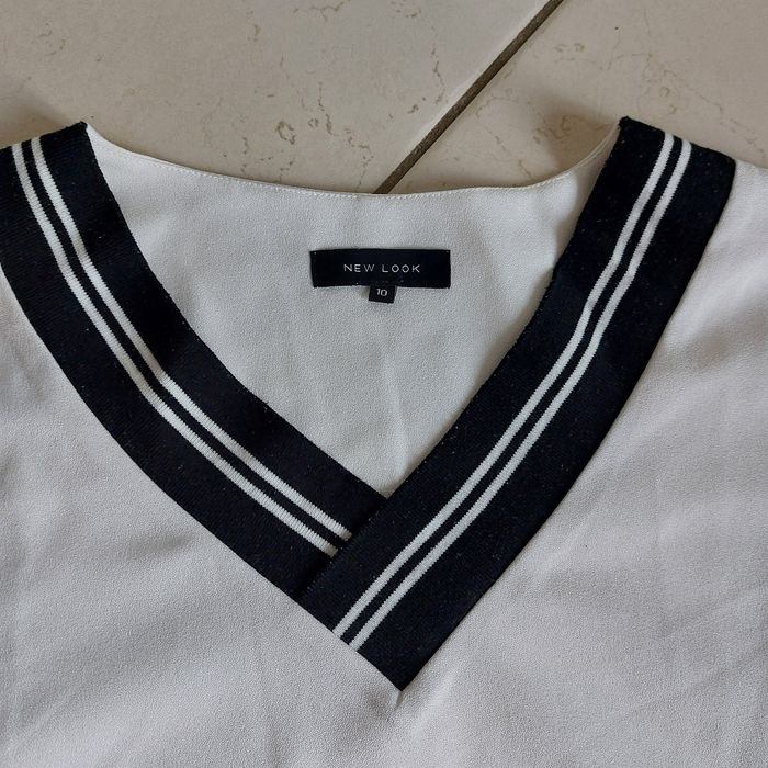 Haut col V Fille Femme New Look Beige et noir Correspond à une taille M 95% polyester, 5% élasthanne Lavable à 40°C Bon état