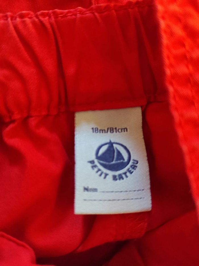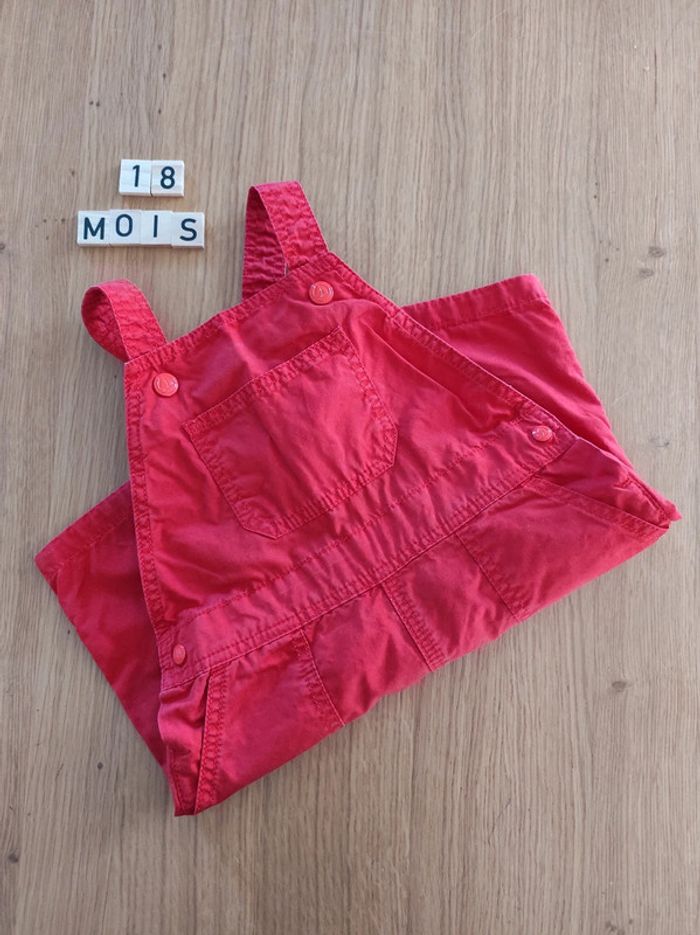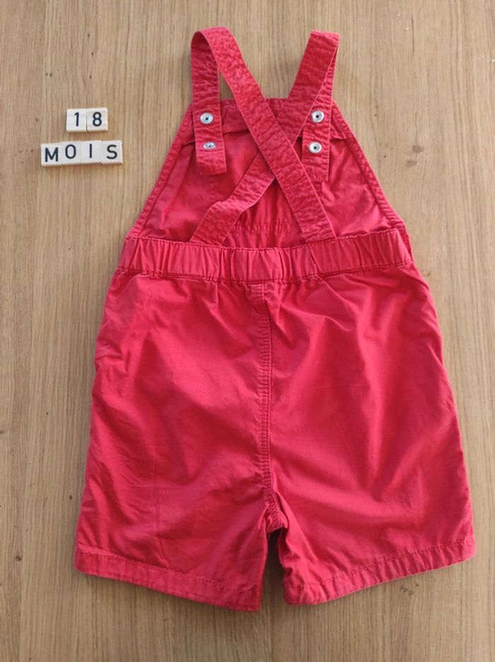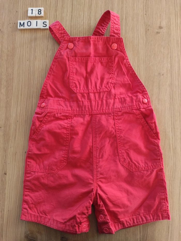 Salopette courte en coton, Petit Bateau, taille 18 mois, en parfait état. Coloris rouge vermillon.