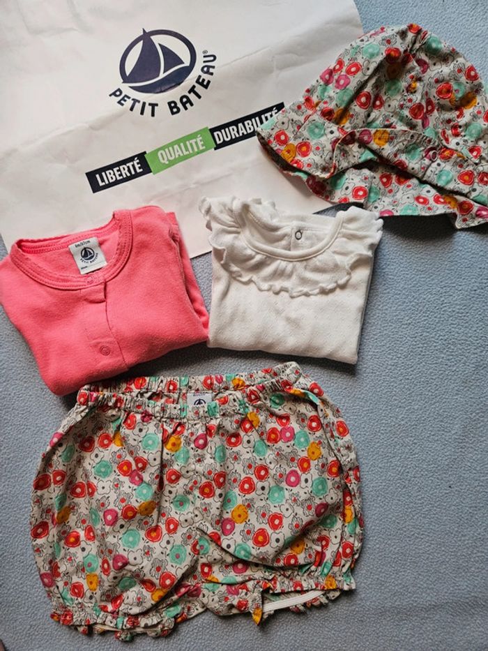 Lot petit bateau Le t-shirt blanc est offert, il a le col jauni