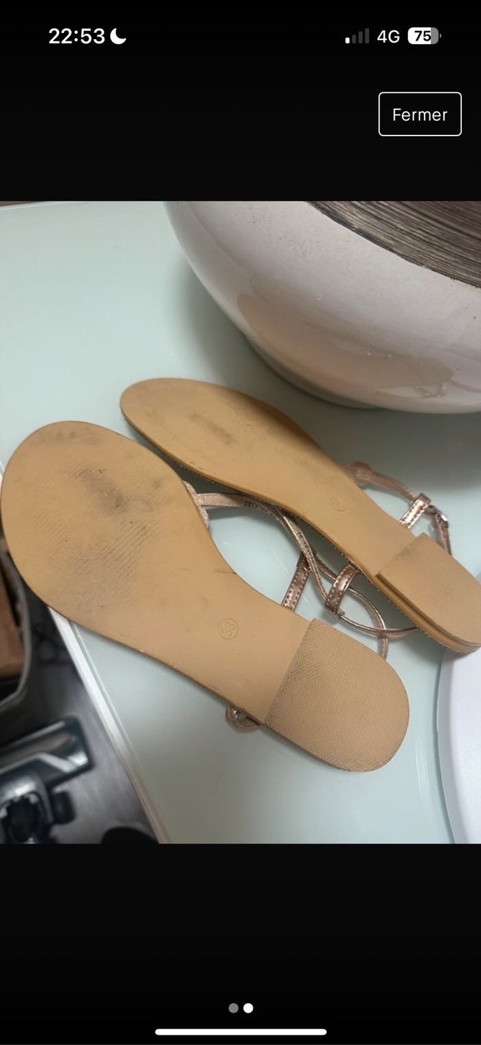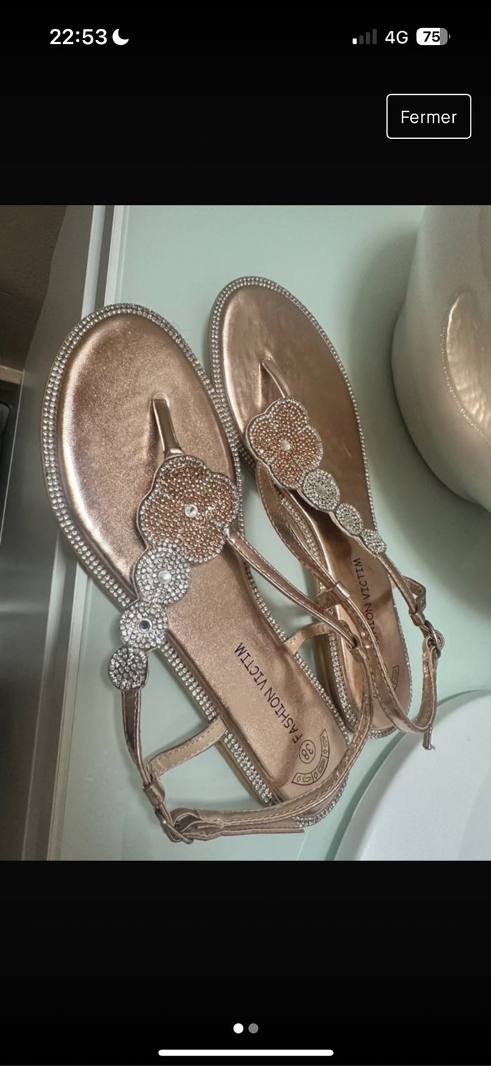 sandales plates à strass, taille 38, portées une fois. Achetées l’été dernier au prix de 69,99