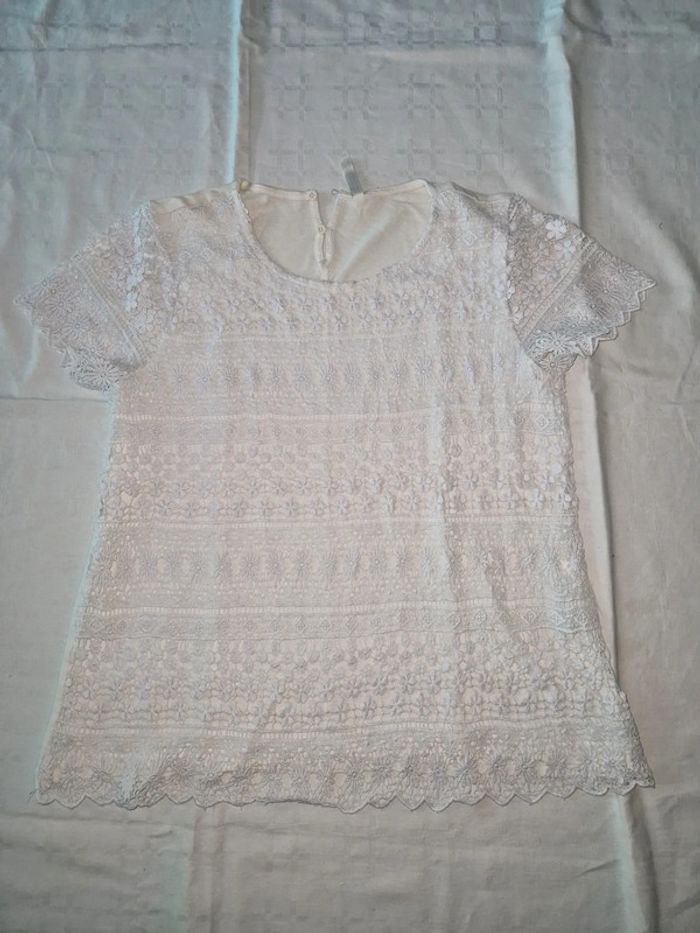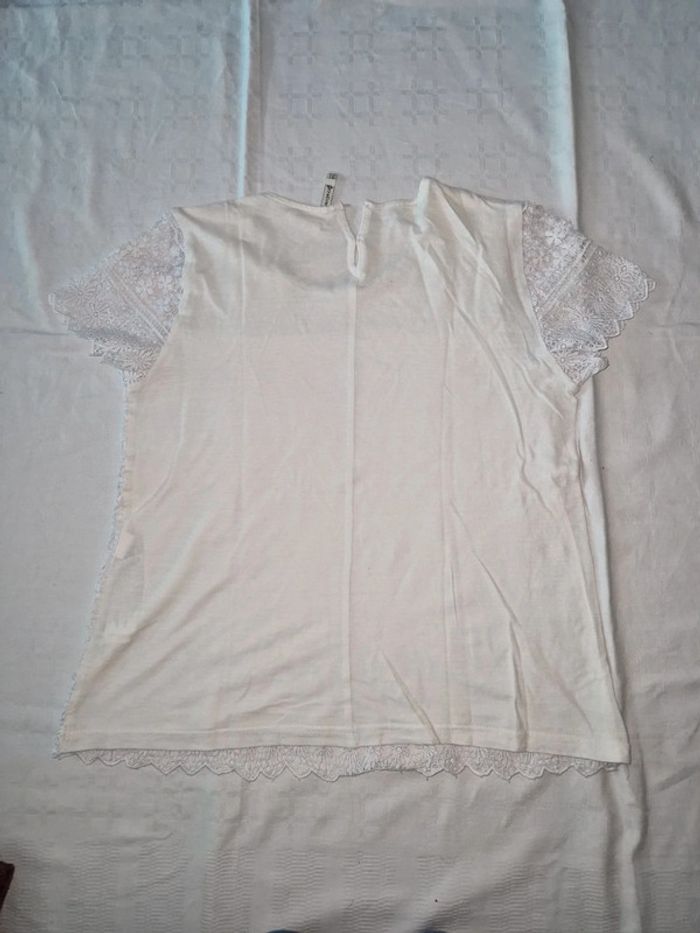 teeshirt blanc manche courte doublé dentelle sur le devant et coton sur le derrière manche en dentelle