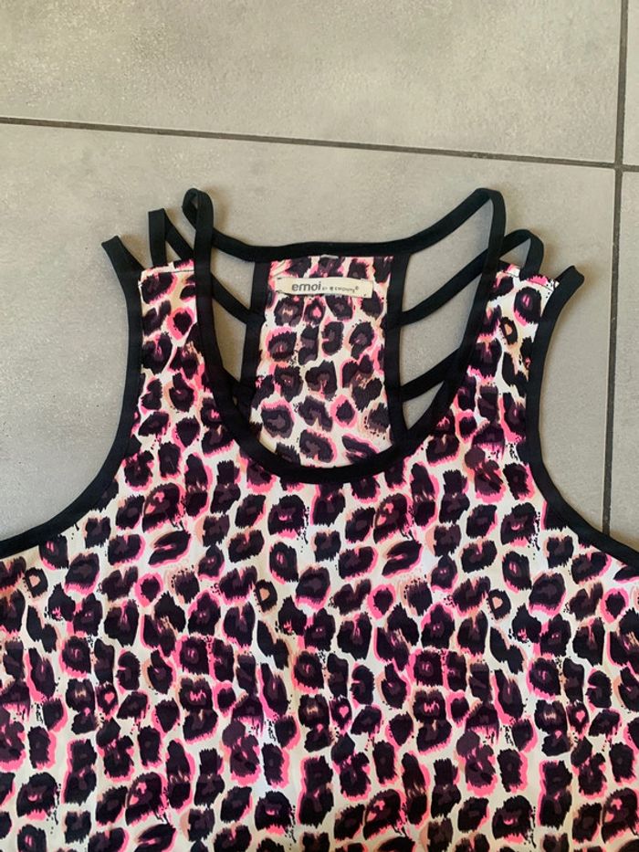 Taille 34, motifs léopard noir, blanc et rose fluo ( convient à un 36) Matière très légère, plus long à l’arrière qu’à l’avant Très joli à porter En parfait état #c_line4_vetement36 #c_line4_vetement34 #topfemme3436 #debardeurfemme34 #blousefemme34 #haut34femme #emoibyemonite