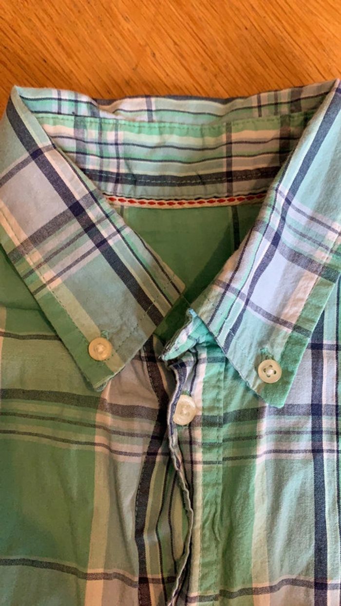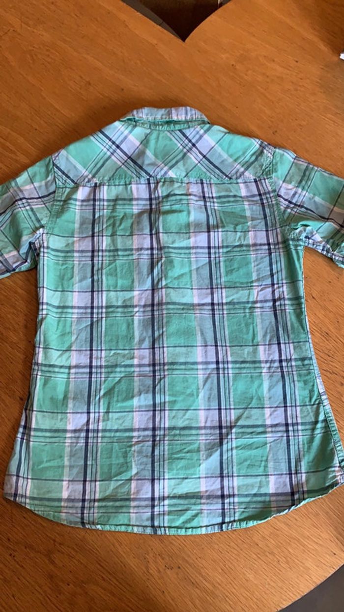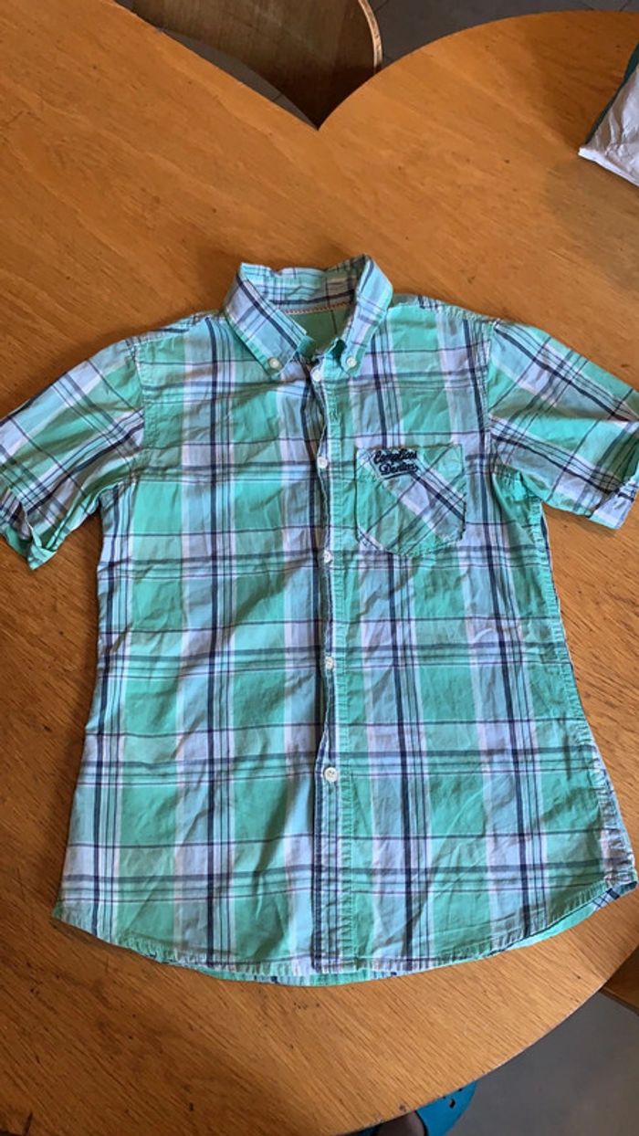12 ans, chemise manches courtes Complices denim, à carreaux vert clair et bleu. Peu portée en très bon état #c_line4_vetement_garcon_12ans #complices12ans #chemise12ansgarçon #chemisecomplices #chemiseété12ans #garçon12ans #étégarçon