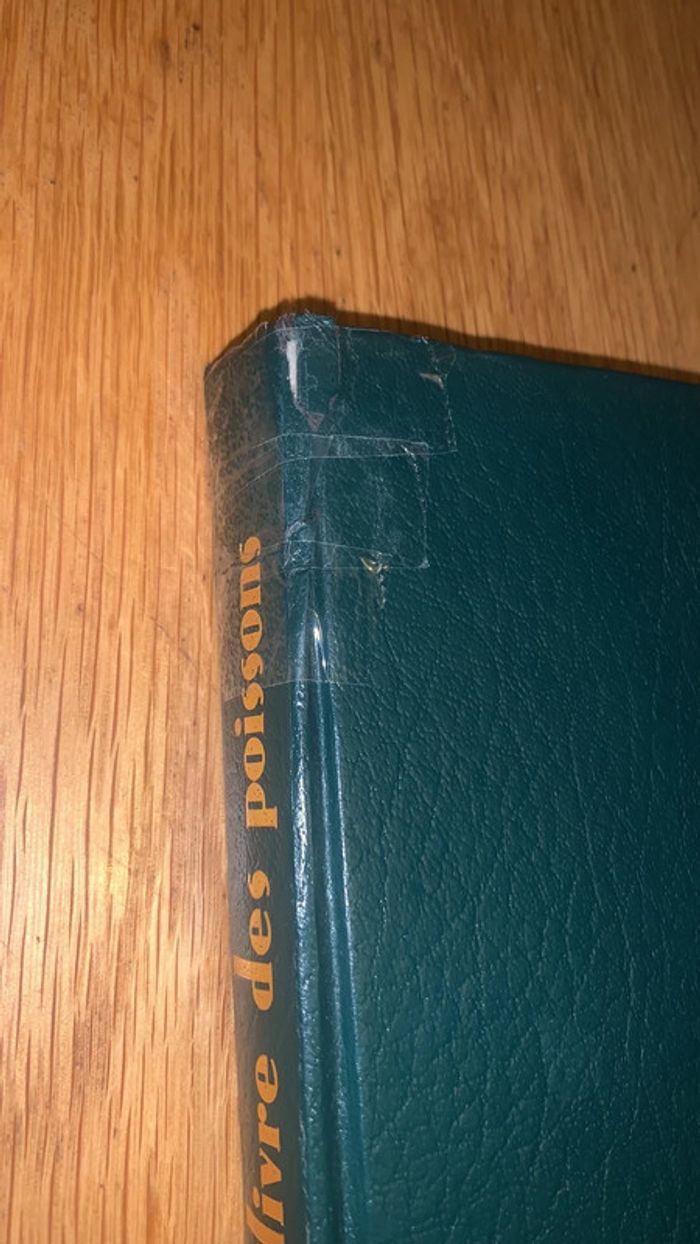 encyclopédie complète sur les poissons du monde entier. couverture imitation cuir verte, un bord était un peu cornée j’y ai mis du scotch ( voir dernière photo) a part ça le livre est en très bon état #c_line4_livre_enfant #c_line4_livre_adulte #encyclopédie #encyclopediepoissons #livrepoissons #encyclopedieenfant #encyclopediejunior