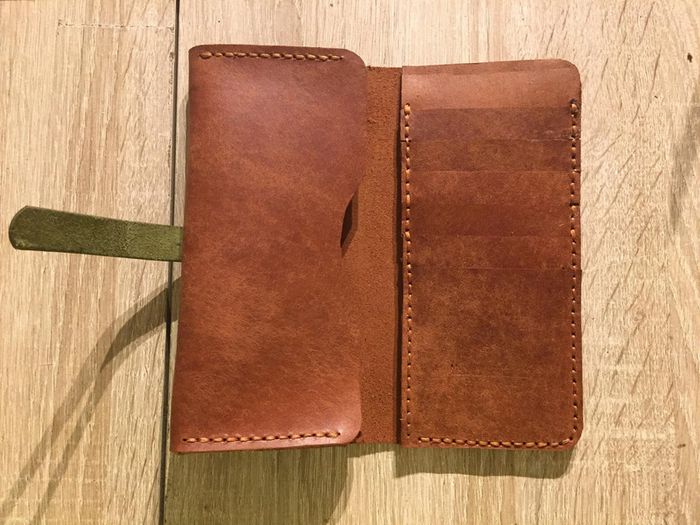 Bonjour, Je fabrique des porte-clés et des porte-passeport, portefeuilles, porte-monnaie etc. Ce portefeuille est unisexe. Il y a 6 compartiments. Vous pouvez mettre 6 cartes, un portable, une l'espèce. Chaque processus, y compris la coupe, le perçage et la couture, est 100% fait à la main. J'utilise le cuir de vachette de première classe. Le vendredi et le samedi sont mes jours d'expédition. Le temps de préparation moyen du produit est de 4 jours. Vous pouvez regarder les autres produits dans mon profile.