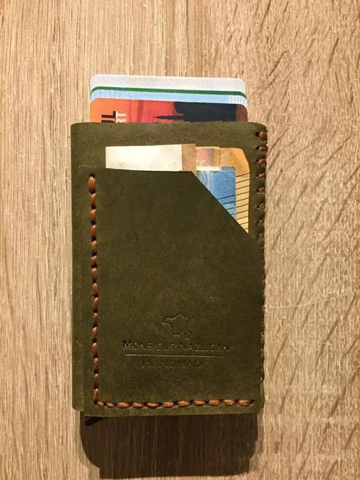 Bonjour, Je fabrique des porte-clés et des porte-passeport, portefeuilles, porte-monnaie etc. Ce porte-carte automatique est unisexe, il y a 2 compartiments. Un est pour les cartes, vous pouvez mettre 5 cartes, et un pour l'espèce. Chaque processus, y compris la coupe, le perçage et la couture, est 100% fait à la main. J'utilise le cuir de vachette de première classe. Le vendredi et le samedi sont mes jours d'expédition. Le temps de préparation moyen du produit est de 4 jours. Vous pouvez regarder les autres produits dans mon profile.