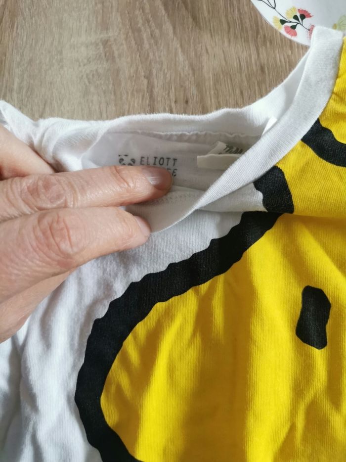 Lot de 2 t-shirt manches courtes bébé en taille 6/9mois de la marque H&M. L'imprimé est le personnage woodstock dans snoopy. Les deux t-shirt sont en très bon état. Il y en a un a l'état neuf et l'autre en très bon etat mais il est tamponné du prenom de l'enfant.