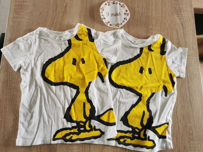 Lot de 2 t-shirt woodstock (snoopy) manches courtes bébé taille 6/9mois H&M en tbe - photo numéro 1