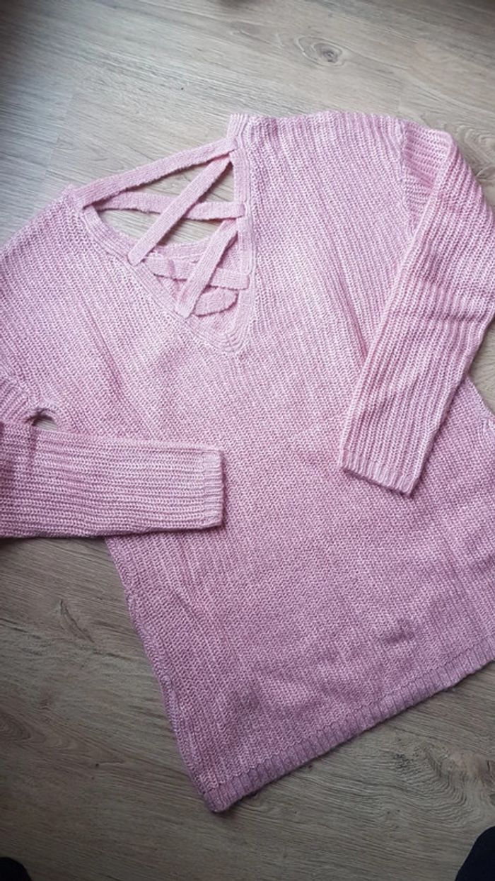 Pull rose bandes croisées dans le dos neuf jamais porté T.S