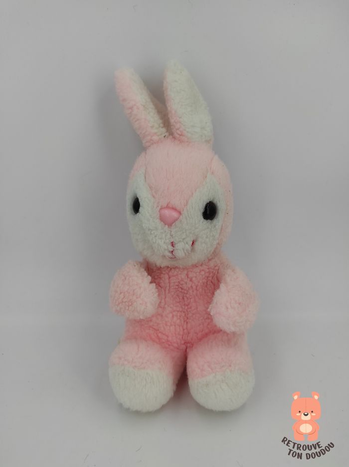 Peluche Lapin rose et blanc Marki Vintage - photo numéro 1