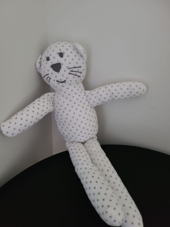 Chat BOUT'CHOU (Monoprix) doudou blanc étoiles grises 115