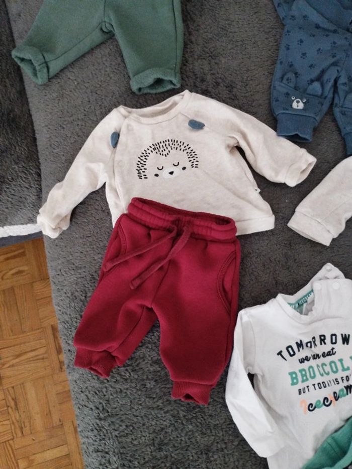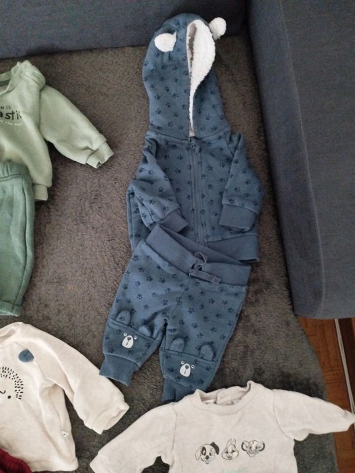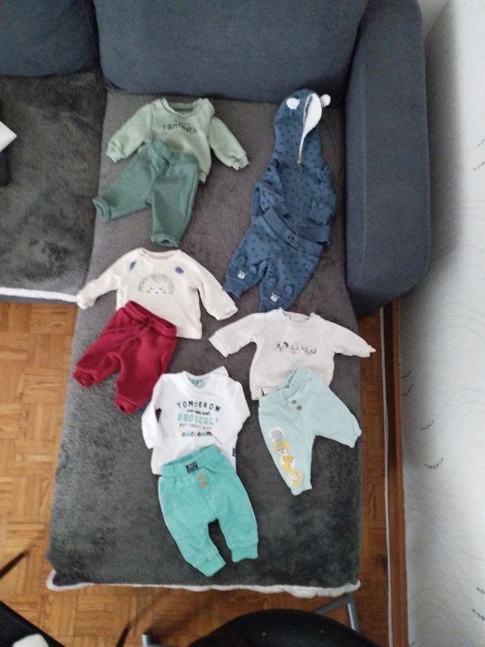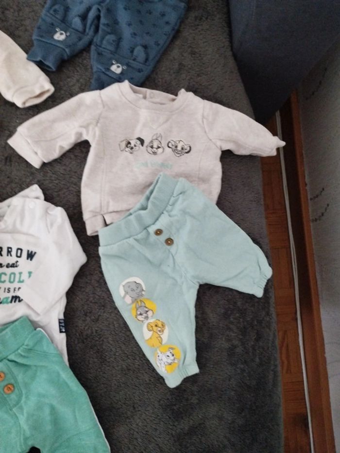 5 ensembles, un mois. En très bon état. Plusieurs marques Kiabi Disney, in extenso, feelje