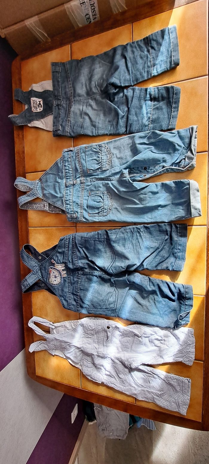 Lot de salopettes garçon en très bon état. Seul la rayée comporte une petite tache. Voir photo.