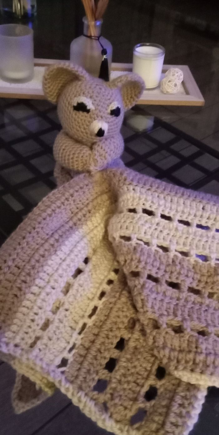 Bonjour je vends ce petit doudou réalisé et crocheté à la main ces yeux et son p'tit museau sont brodé doud