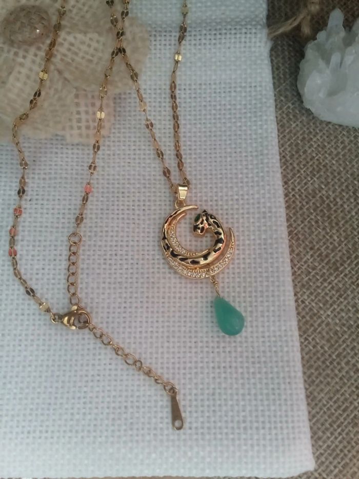 Collier féline pierre de calcédoine 💚. - photo numéro 1