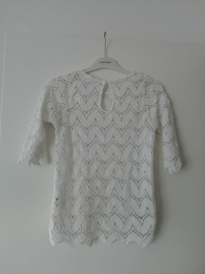Pull fin blanc manches 3/4 ajouré Jennyfer taille XS - photo numéro 2