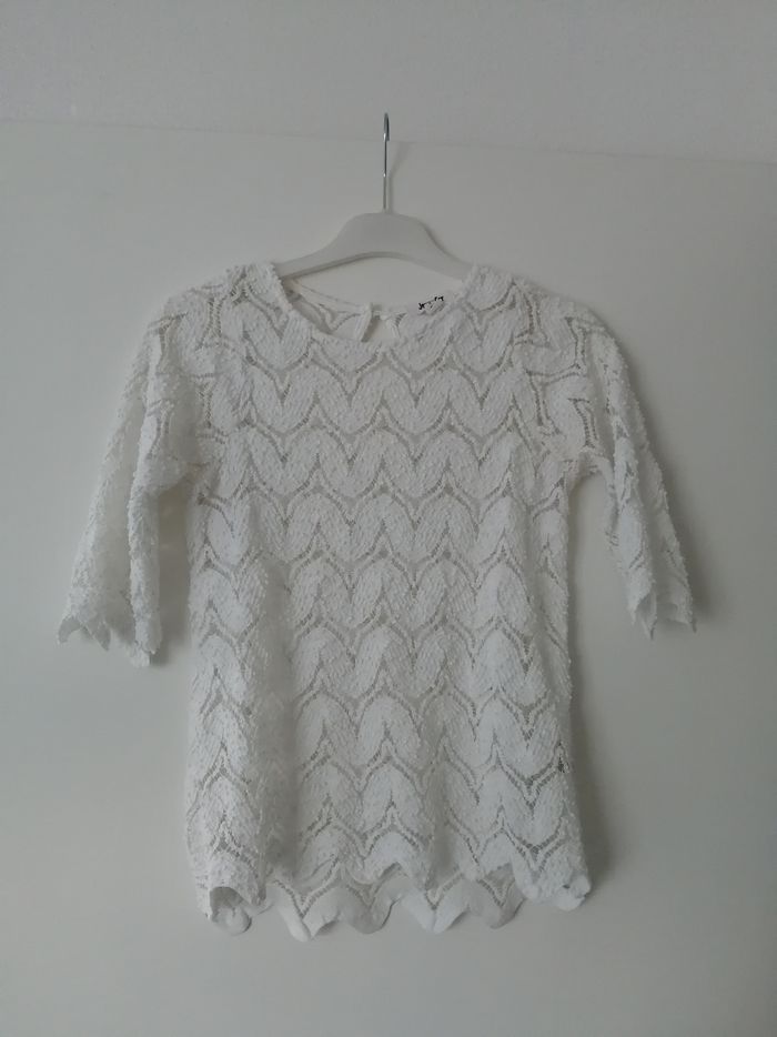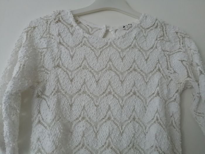 Pull fin blanc manches 3/4 ajouré Jennyfer taille XS - photo numéro 1