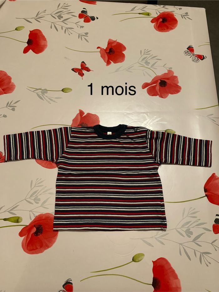 Vends pull rayé bleu foncé, rouge et blanc Taille : 1 mois Prix : 2€
