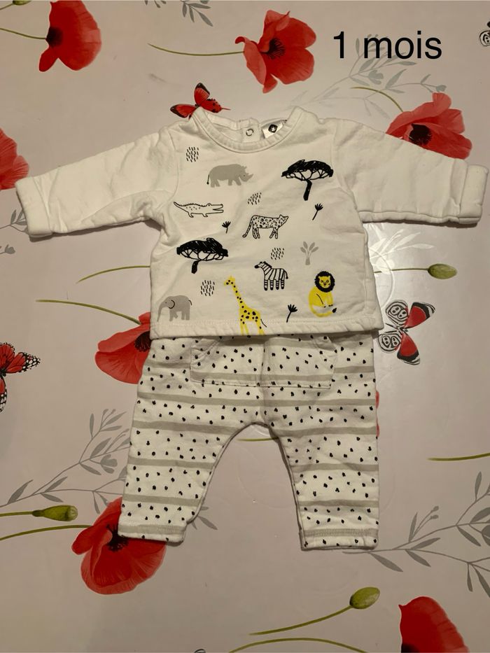 Vends ensemble pull + pantalon motif savane. Taille : 1 mois Prix : 3€